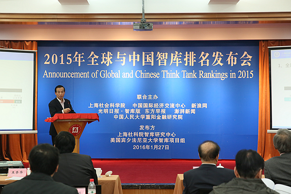 上海社科院党委书记于信汇主持发布会上海社科院智库研究中心名誉理事长王荣华致辞中国国际经济交流中心副理事长魏建国致辞上海社科院副院长黄仁伟发布2015年中国智库报告及排名上海社科院智库研究中心副理事长李轶海授权发布2015年全球智库报告(中文版)及排名 文字:智库研究中心|图片:刘峰|编辑: 返回顶部