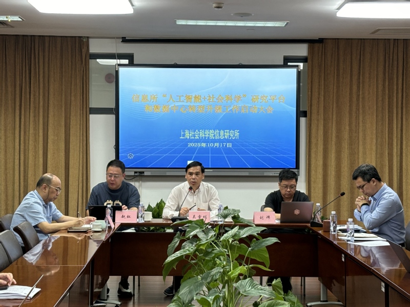 10月17日上午,上海社会科学院信息研究所召开“人工智能+社会科学”研究平台和数据中心转型升级工作启动会。上海社会科学院副院长吴雪明、信息研究所所长刘炜、副所长丁波涛、副所长汪怿、院信息办主任赵虹出席会议,信息所全体科研与管理人员参加会议。会议由丁波涛主持。