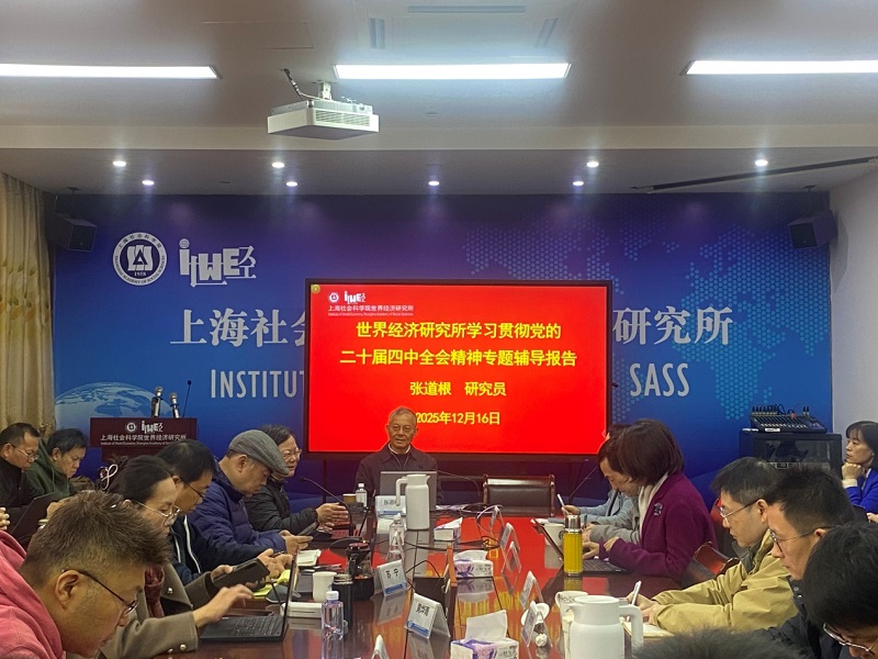 12月16日上午,世界经济研究所在478会议室召开全所会议,围绕党的二十届四中全会精神开展专题学习。会议邀请上海社会科学院原院长张道根研究员作专题辅导报告,会议由所党总支书记、副所长(主持工作)赵蓓文研究员主持。