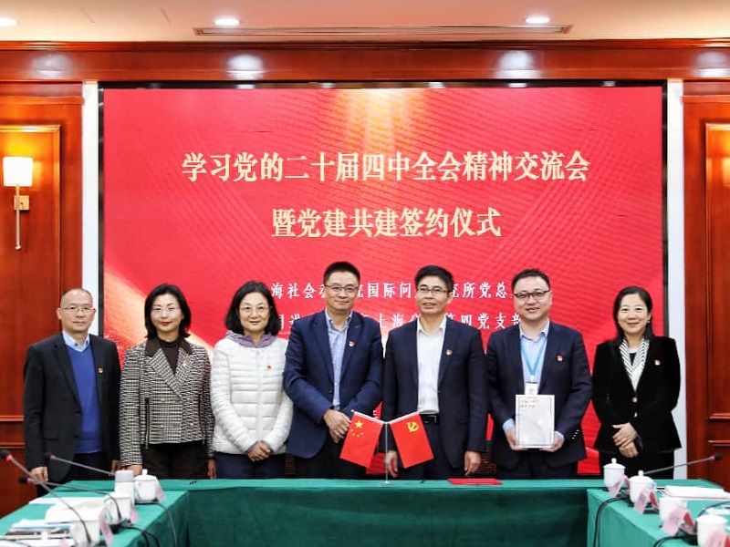 近日,国际问题研究所党总支和中国进出口银行上海分行第四党支部共同举行学习党的二十届四中全会精神交流会暨党建共建签约仪式。国际所办公室主任周隆敏主持会议。