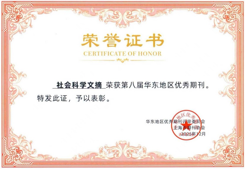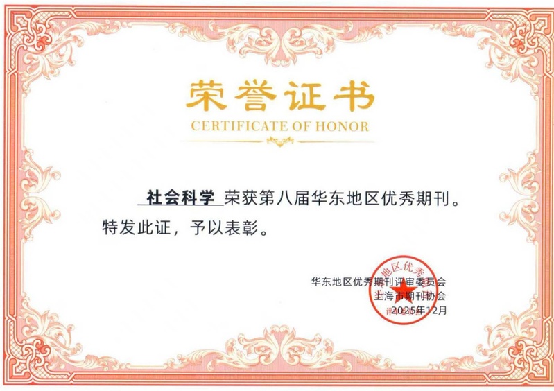 上海社会科学院社会科学杂志社《社会科学》《社会科学文摘》荣获第八届华东地区优秀期刊。华东地区期刊协会联盟于20259月组织开展第八届华东地区优秀期刊推荐活动。经过各省(市)期刊协会初评推荐,华东地区优秀期刊评审委员会终评审议通过,上海市共有130种期刊入围。