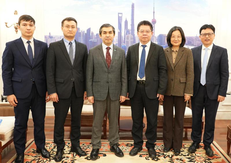 哈萨克斯坦驻上海领事阿力(Arnur Kassymbekov)、总领事助理叶力克(Yerlik Burlikuly)陪同来访,我院国际合作处处长程福财研究员、国际问题研究所副所长刘阿明研究员等等参加会见。