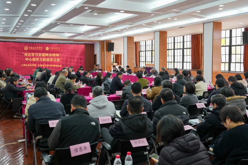 我院和上海市社联党组领导班子成员,研究所、职能处室(直属单位)主要负责人以及我院退休同志代表等参加本次学习。会上,《学术月刊》总编辑钱运春,应用经济研究所副所长汤蕴懿分别结合各自研究领域和工作实际,分享了学习两会精神的心得体会。