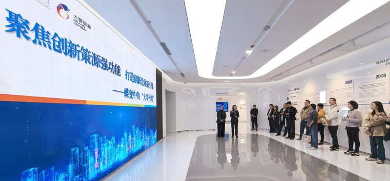 随后,全体同志前往“大零号湾”科技创新策源功能展示厅,现场听取大零号湾集团党委副书记、经理徐亚云关于科创策源功能区的专题报告。徐书记系统梳理了大零号湾从早期依托高校资源起步,到如今作为上海科创中心核心承载区的发展脉络,重点阐释了其独特的“CTO”布局理念:以两所核心高校(College)——上海交通大学、华东师范大学为创新策源极核,沿剑川路等主要交通干道(Transportation)布局创新功能载体,串联起多个大型孵化产业园(Office Park),形成“高校策源—街区联动—园区转化”的协同创新格局。通过学习,大家对高校创新策源与区域产业发展的深度融合有了更为直观的认识,深刻感受到“大零号湾”在推动“政产学研用金”协同创新、构建全链条创新生态方面所形成的生动实践。