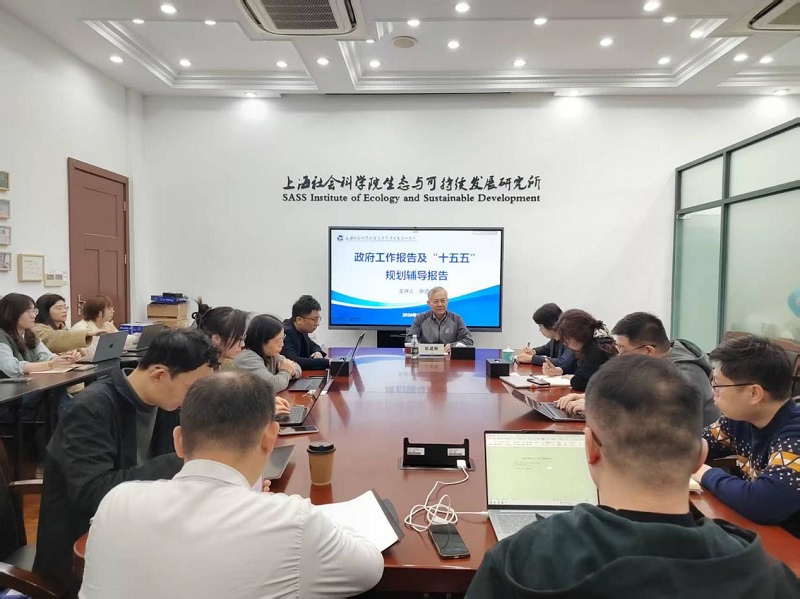 近日,上海社会科学院生态与可持续发展研究所邀请上海社会科学院原院长张道根研究员作树立和践行正确政绩观学习教育暨2026年政府工作报告及“十五五”规划报告专题辅导。本次辅导将宏观政策解读与树立和践行正确政绩观学习教育深度融合,旨在帮助全所党员职工准确把握发展方向,以正确政绩观引领学科发展和智库建设。党支部书记、所长周冯琦研究员主持会议,全所职工参加会议。