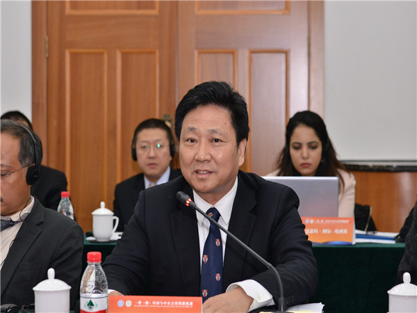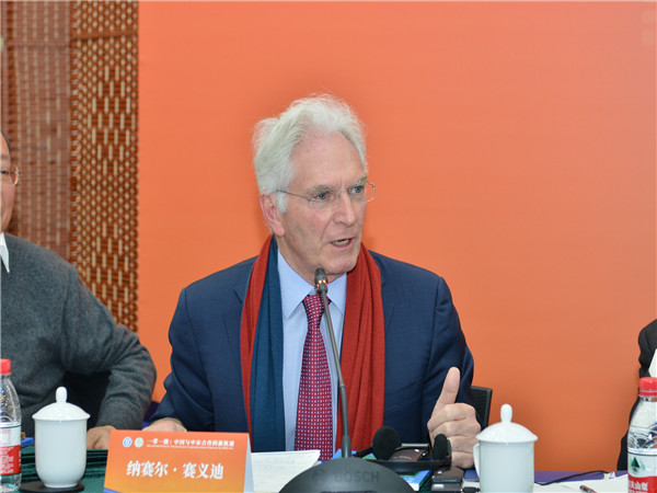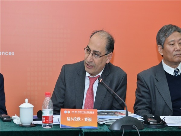签约仪式后举行了“‘一带一路’:中国与中东合作的新机遇”国际学术研讨会。开幕式环节中,外交部前副部长、中国中东学会名誉会长杨福昌大使应邀发表主旨演讲。杨福昌曾在埃及、科威特等国担任大使,在担任外交部副部长期间也是主管西亚、非洲等相关事务,后来还担任过外交学院院长等。他认为,中国与阿拉伯国家的经济互补型很强,而且中阿之间的关系一直非常友好和睦,这给双方进一步开展合作奠定了良好基础。“一带一路”倡议的提出为中国与中东合作提供了新机遇。他表示,“一带一路”是一个开放、平等、民主的倡议,在建设“一带一路”的过程中,中国愿与沿线各个国家和地区一到共商共建,让“一带一路”建设融入各个国家原本的发展计划之中,最终共享发展成果。