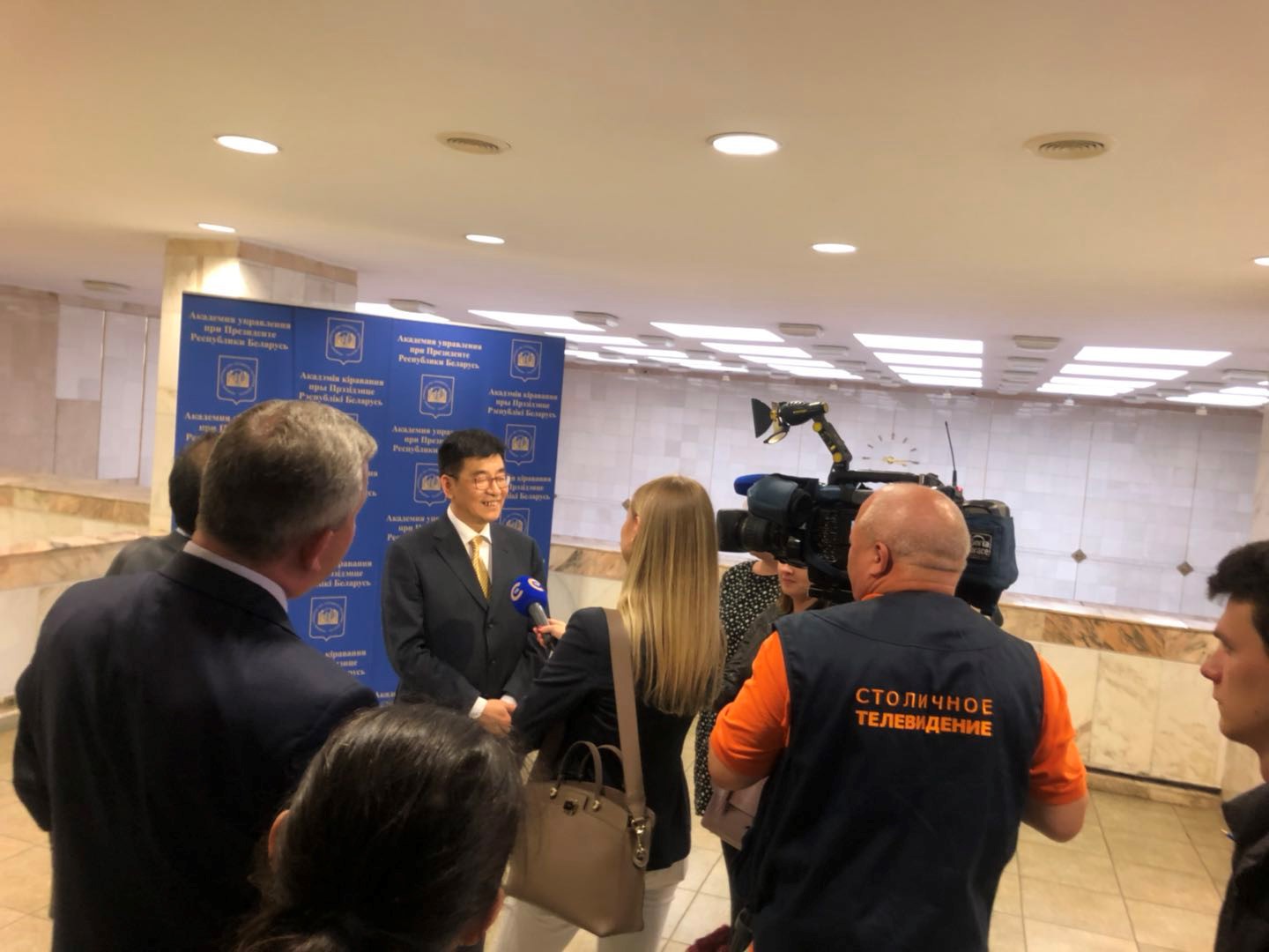 合作会谈后,两院领导分别代表合作双方,签署两院合作备忘录,并接受了白俄罗斯国家通讯社、首都电视台等媒体的采访。