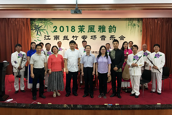 6月15日中午,上海市工人文化宫茉莉花江南丝竹社在院本部小礼堂为我院职工奉上“茉风雅韵•江南丝竹演奏会”——午间文化一小时活动。演奏会上,上海茉莉花江南丝竹社主管、常任指挥吴坚,对相关的演奏乐器和曲目进行了简洁、生动地讲解。演出精彩成功,余音绕梁。参加演奏会的听众陶醉其中,神游于江南丝竹这一古老而又年轻的中国文化。