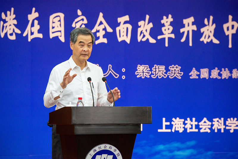 值上海社会科学院建院60周年暨中国改革开放40周年之际,全国政协副主席、香港特别行政区前行政长官梁振英先生应邀于2018年8月31日到访上海社会科学院,并发表《香港在国家全面改革开放中的持续作用》主题演讲。上海社会科学院张道根院长会见梁振英副主席并主持演讲会。梁振英先生认为中国改革开放取得国际公认的巨大成就主要有三个重要的精神在推动:第一,攻坚闯关。第二,艰苦奋斗;第三,借鉴学习。梁先生回顾总结了香港在中国改革开放不同时期的独特作用,他认为40年来,内地学习借鉴的对象很多,香港就是其中一个。香港有两个优势:一是“一国两制”;二是香港既是国内又是境外。梁先生就国家土地制度、住房制度以及土地批租制度等进行举例说明。改革的动力源于经济要发展,民生要改善,而今国家全面改革开放必须要有新的动力来推动,应该继续保持攻坚闯关、艰苦奋斗和谦虚学习的精神,积极探索解决改革开放的深层次问题。