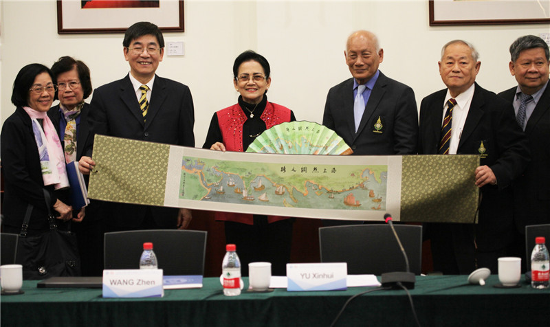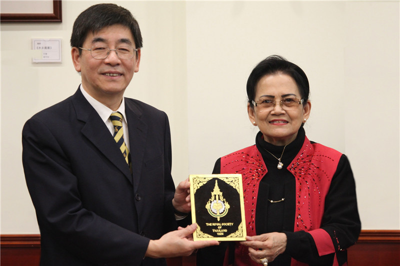 泰国皇家学会第一副主席尼波登·赛拜佳(Nibondh Saibejra)、科学研究院院长苏拉珀·伊萨拉格利斯(Surapol Issaragrisil)、人文研究院院长普拉空·妮曼哈敏达(Prakong Nimmanahaeminda)和一批重要专家学者一同来访。