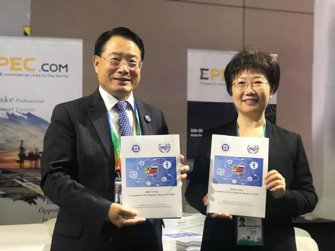 联合国工业发展组织李勇总干事与上海社会科学院经济研究所所长沈开艳研究员一同发布《2018金砖+国家电子商务发展报告》