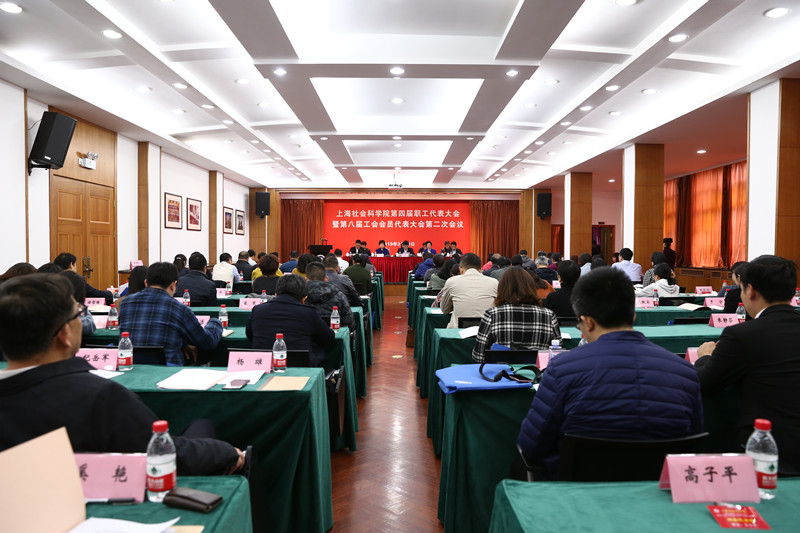 3月29日下午,上海社会科学院第四届职工代表大会暨第八届工会会员代表大会第二次会议在淮海中路院本部小礼堂成功召开。院党委书记于信汇,党委副书记王玉梅,以及来自全院各研究所、各部门、各直属单位的120余名正式和列席代表出席会议。大会听取了王玉梅副书记代为宣读的张道根院长所作的致辞,听取了院财务处长张国云做的财务工作报告、院工会副主席韩汉君做的提案工作报告、院工会主席杨鹏飞做的院工会工作报告和院职工重大疾病帮困基金管理和使用办法修订说明等。