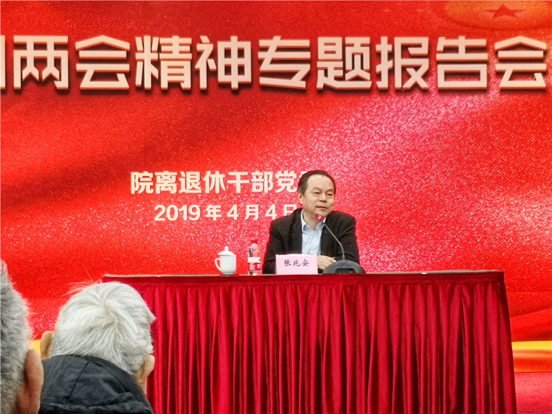 4月4日上午,全国人大代表、上海社会科学院副院长张兆安应邀为全院离退休老同志传达十三届全国人大二次会议精神。院离退休干部党委书记、组织部部长包蕾萍主持报告会,全院离退休各支部党员、老同志近百人参加了报告会。