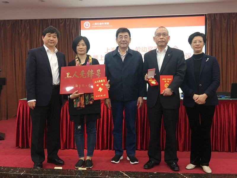 王玉梅副书记首先宣读了上海市总工会表彰决定,授予上海社会科学院社会科学报社2019年度“上海市工人先锋号”荣誉称号,授予法学所研究员金永明“上海市五一劳动奖章”荣誉称号。随后,院领导于信汇书记、王玉梅副书记共同为获奖个人和单位颁奖。