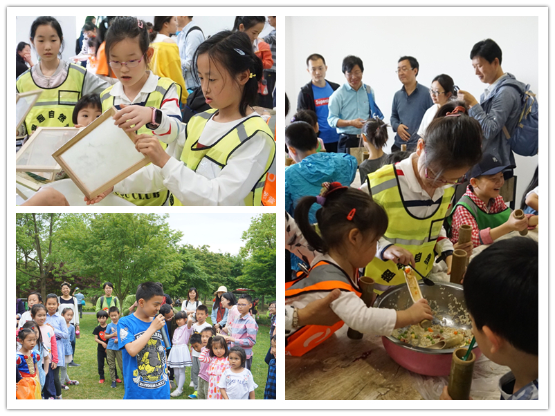 孩子们先听老师讲解造纸知识、非遗风车原理和制作要领,然后在家长们的协助下,亲身体验打纸浆、抄纸帘,做成纸张并贴上花草,亲手制作漂亮的泥鼓风车、花色再生纸和五彩竹筒饭。下午,在生态园草坪上,孩子们分组进行了团队拓展的训练,开展了贪吃蛇、超音速等游戏,并从中总结了团队合作、行动策略等方面的技巧和经验。孩子们与老朋友相聚,与新朋友相识,在学习、体验和协作中度过了一个美好的“六一儿童节”。