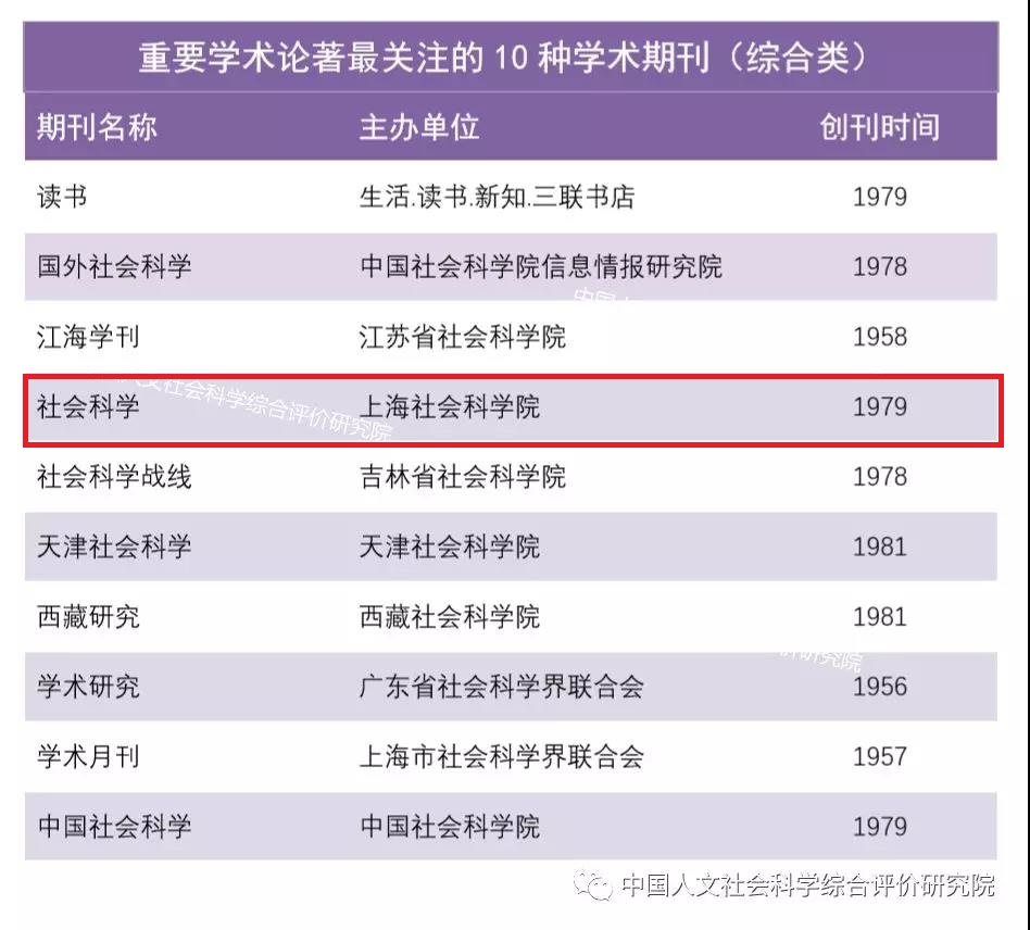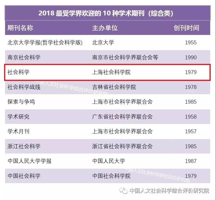 近日,中国人文社会科学综合评价研究院连续发布了2018最受学界欢迎的10种学术期刊(综合类)与重要学术论著最关注的10种学术期刊(综合类)名单,《社会科学》杂志均荣列其中。