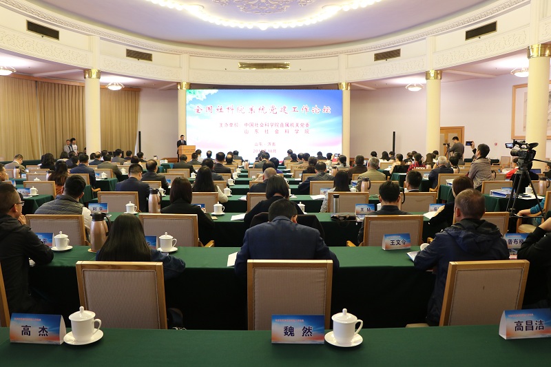 10月23日,由中国社会科学院直属机关党委、山东社会科学院联合主办的全国社科院系统党建工作论坛在济南举行。中国社会科学院秘书长、党组成员赵奇,山东省政协副主席、山东社会科学院党委书记唐洲雁,中共山东省委省直机关工委分管日常工作的副书记张圣中,中共山东省委宣传部副部长孔繁轲出席论坛,山东社会科学院党委副书记、院长张述存主持论坛开幕式。与会代表以习近平新时代中国特色社会主义思想为指导,巩固“不忘初心、牢记使命”主题教育成果,围绕加强党的建设进行深入研讨,推动全国社科院系统党建工作向纵深发展。