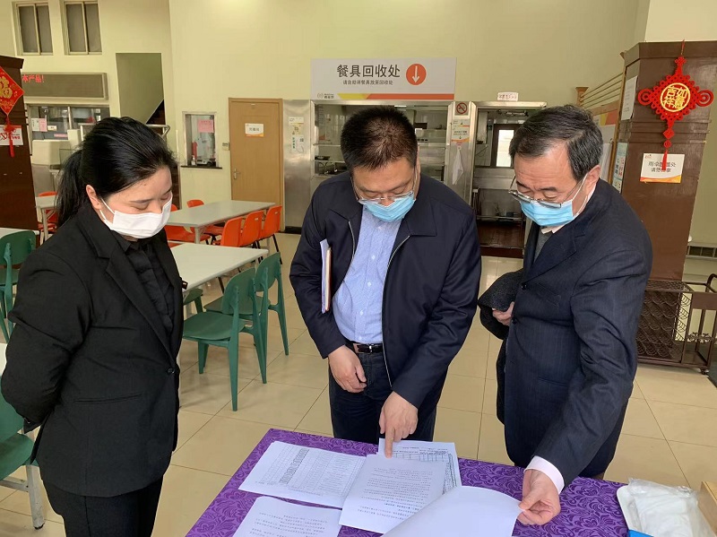 杨永平一行检查了总部出入口、职工食堂、防控物资仓库等重点部位,仔细查阅了台账资料,详细询问人员管理、食堂防控、应急物资储备等情况。