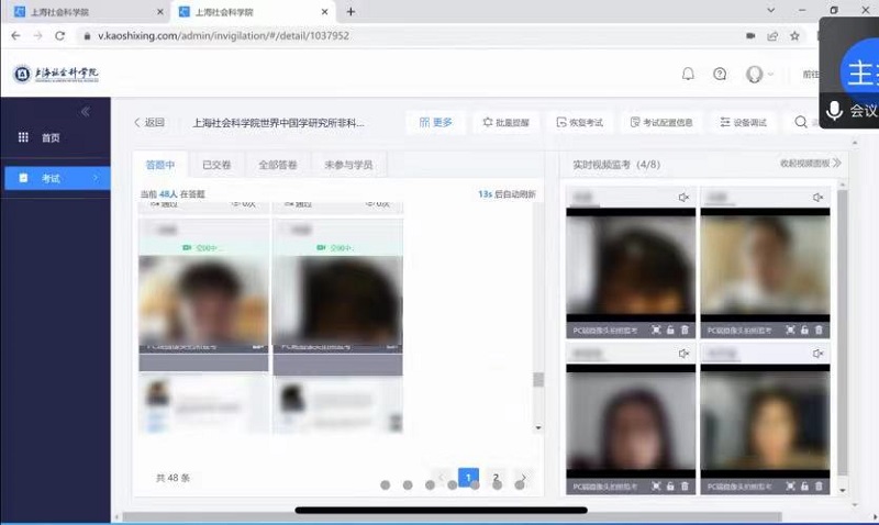 王振副院长亲临本次线上考试的巡考,在考前动员会上他指出:考试期间正值上海处于新冠肺炎疫情防控最关键阶段,但我们仍需克服困难,从严推进我院招聘工作;在社科院封闭管理状态下,能确保各项工作有序进行,并对大家的辛苦付出表示了感谢。此外,市人社局和市社联相关处室领导也共同参与本次考试巡考工作,他们对我院此项创新举措表示了肯定。