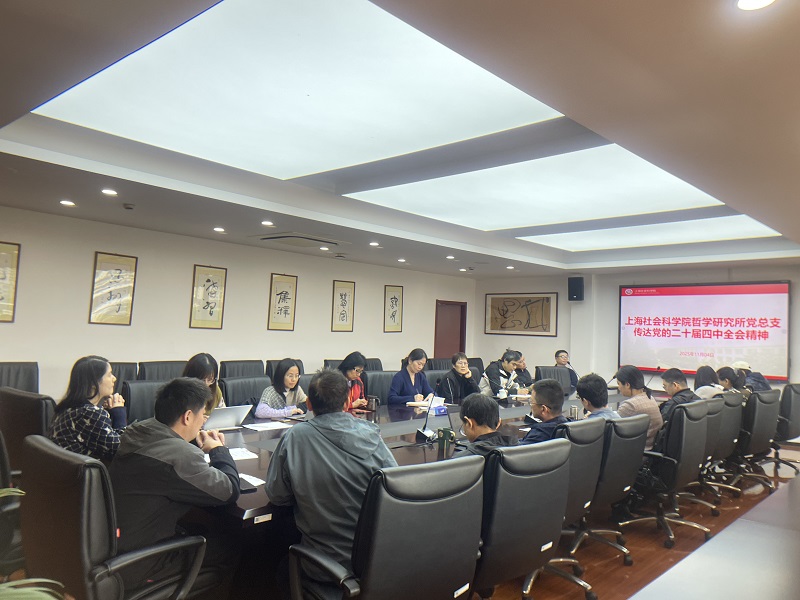 为了深入学习领会、全面贯彻落实党的二十届四中全会精神,2025年11月4日上午,上海社会科学院哲学研究所党总支召开传达与学习党的二十届四中全会精神会议,哲学研究所党总支副书记曹敏同志主持会议,党总支书记黄凯锋同志传达了党的二十届四中全会精神,哲学研究所全体党员参加会议。
