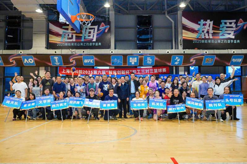 11月5日,上海社会科学院 2025 第六届“智库创新杯”三对三篮球交流赛在黄浦世博体育园篮球馆举行。院党委副书记姚建龙在开幕式上讲话,鼓励职工们坚持“文体并举、劳逸结合”的理念,积极锻炼身体,保持健康的身心状态,赛场上牢记安全第一,友谊至上;并为比赛开球。