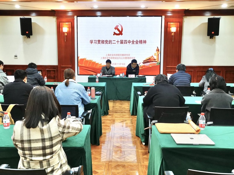 为深入学习领会、全面贯彻落实党的二十届四中全会精神,11月18日上午,宗教研究所党支部与政治与公共管理研究所党支部开展党的二十届四中全会精神专题联组学习,邀请市委党校袁峰研究员做《学习党的二十届四中全会精神 全面贯彻落实“十五五”规划》的专题辅导报告。会议由宗教研究所党支部副书记佘凌同志主持,宗教研究所及政治与公共管理研究所全体职工参与此次专题学习。