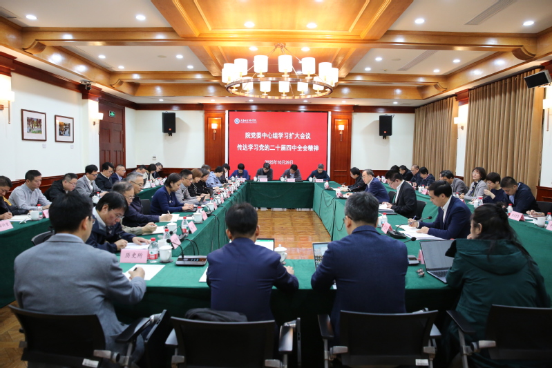 10月29日,上海社会科学院召开党委中心组学习扩大会议,传达学习党的二十届四中全会精神,部署我院学习宣传贯彻工作。院党委书记权衡主持会议并传达中央和市委有关学习二十届四中全会精神和要求,常务副院长干春晖传达宣传系统党政主要负责人会议精神和要求。院党委副书记姚建龙、副院长吴雪明出席会议。研究所、机关处室、直属单位和工青妇的主要负责人参加会议。