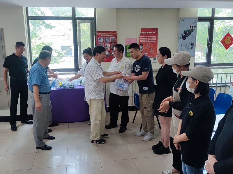 2021年7月9日下午,院工会主席杨鹏飞、行政处处长黄正华一行先后来到院总部门岗、监控室、办公楼1楼大厅和职工食堂等地,代表院领导向奋战在高温一线的服务企业职工送上毛巾、矿泉水等夏季防暑用品,并表示亲切慰问和衷心感谢。