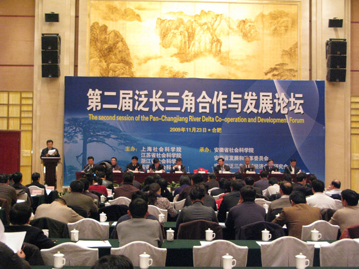 2009年11月23日,我院常务副院长左学金研究员率队参加在安徽合肥召开的第二届泛长三角合作与发展论坛。左学金作为论坛发起方的重要代表之一,在论坛上发表了题为《泛长三角产业转移与区域合作》的演讲。安徽省委常委、省政府常务副省长孙志刚出席论坛并致辞。安徽省人大副主任郭万清出席论坛并演讲。安徽省政府副省长唐承沛致闭幕词。安徽省发展改革委副主任刘荣华介绍了安徽省参与长三角分工合作的有关情况。来自中国社科院、国家发改委宏观研究院、中国人民大学、对外经济贸易大学和上海、江苏、浙江、福建等省(市)社科院的领导和专家共有120多位代表出席论坛。