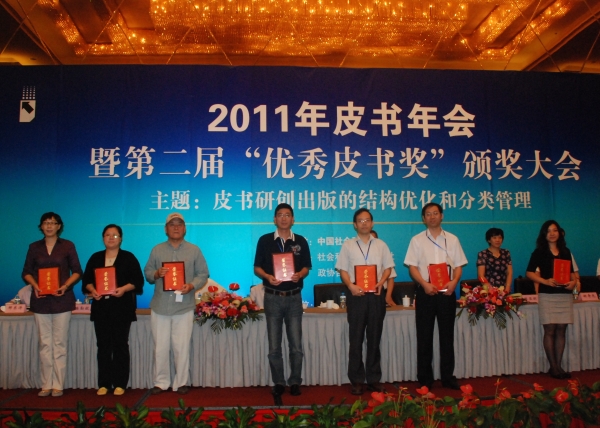 在8月26-27日安徽省合肥市召开的“ 2011年皮书年会暨第二届‘优秀皮书奖’颁奖大会”上,我院学者编撰的《上海蓝皮书:上海社会发展报告(2010)》一书荣获第二届“优秀皮书奖·提名奖”。