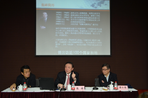 2013年11月1日,我院第17次高层论坛在国际社科创新基地5楼多功能厅举行,原国家外经贸部副部长张祥教授作“文化软实力与国际谈判”主题演讲。
