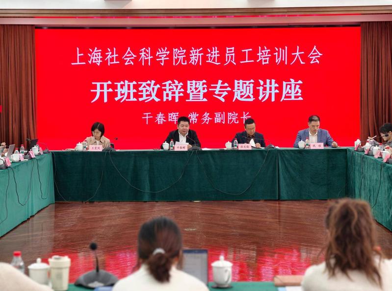 干春晖代表院党委领导班子和全院职工,对新入职的同事表示热烈欢迎,之后从坚持正确的政治方向、筑牢思想根基;服务国家大局、彰显社科担当;找准自身定位、融入团队发展;保持学术韧性、坚守理论初心;掌握科研方法、提升研究能力五个方面为新进人员做了专题讲座。他指出,党的二十届四中全会精神为我们指明了前进的方向,也提出了新的任务和要求,我们要切实地把会议精神落实到研究中、体现到行动上。现在正是中国式现代化全面推进的关键历史节点,正是施展才华、实现价值的绝佳时机。希望大家以此次培训为起点,尽快融入集体,珍惜时代所赋予的历史使命,在上海社科院的广阔舞台上,立大志、明大德、成大才、担大任,以理论回应时代,以智慧服务人民、服务国家,在构建中国特色哲学社会科学的征程中写下属于自己的精彩篇章。