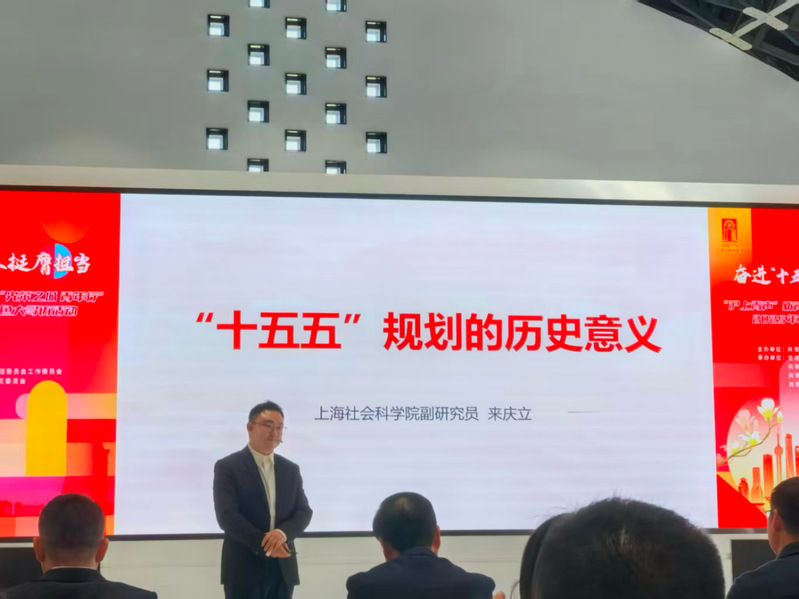 11月27日,上海社科院青年讲师团副团长来庆立副研究员受团上海市委邀请,在“奋进‘十五五’青春挺膺担当”“沪上青声”新青年微宣讲暨“光荣之城青年行”2025 年上海青少年红色大寻访活动中,在虹桥源为现场青年讲授《中共中央关于制定国民经济和社会发展第十五个五年规划的建议》的主要内容,来庆立从历史视角出发,系统梳理了我们党从“一五”计划开始,通过五年计划形式,不断探索社会主义现代化道路的历史进程,用历史叙事的方式分析了“十五五”规划建议的重大意义。